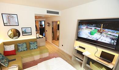 在建筑科技創(chuàng)新展區(qū)現(xiàn)場(chǎng),一家別致的“星級(jí)酒店”被整體打包搬了進(jìn)來(lái)。這是中集集團(tuán)旗下的中集模塊化建筑投資有限公司利用模塊化建筑技術(shù)為一家國(guó)際知名連鎖酒店建造的客房,建筑模塊100%在工廠里建造完成,模塊室內(nèi)面積約21平米。除了走廊、臥室、浴室等功能外,中集模塊化建筑特有的幕墻技術(shù)和箱體連接技術(shù)也在模塊外立面得以展示,并配備智能家居設(shè)備,如睡眠監(jiān)測(cè)、智能魔鏡、智能體脂稱(chēng)等,實(shí)時(shí)監(jiān)測(cè)健康數(shù)據(jù),將智能化帶入到生活中,讓入住者的體驗(yàn)感更佳。展會(huì)期間,吸引眾多參展客商和觀展市民的興趣。