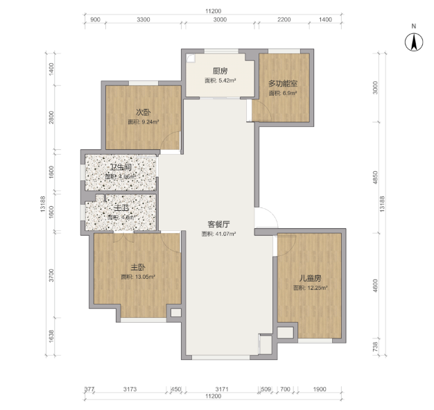 驪住全屋定制以純凈的白色墻面做基底色,室內(nèi)建材以驪住白色室內(nèi)門與灰色衣柜為輔,搭配顏色淡雅、紋理細(xì)膩的洗柿核桃色驪住地板,空間清雅明亮。