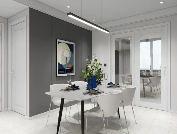驪住全屋定制增強(qiáng)空間色調(diào)的層次感,一組驪住漆白色玻璃款推拉門設(shè)立于餐廳與廚房間,通透明亮的既視感很是舒適。