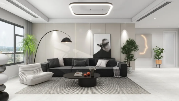 客廳簡雅大氣,驪住全屋定制遵循黑白灰顏色搭配,局部線條設(shè)計(jì)簡潔流暢。