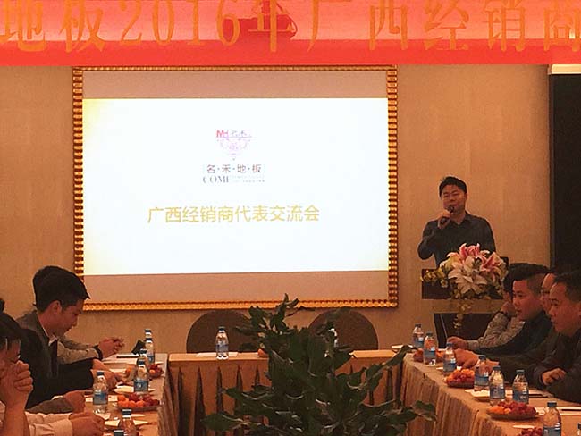 2016年3月8日9時許,名禾地板廣西經銷商交流會在中山市金沙大酒店成功舉辦。此次會議圍繞2016年地板行業市場趨勢,名禾將作出針對性
