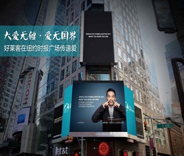 4月21日,好萊客“世界無醛日,讓TA更安全”登陸美國紐約時代廣場,向世界傳遞對白血病兒童的關注與愛護,更借此機會讓更多人關注并幫助白血病兒童。