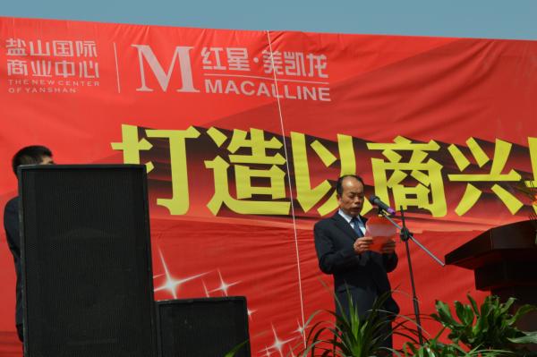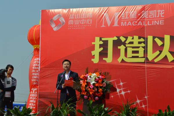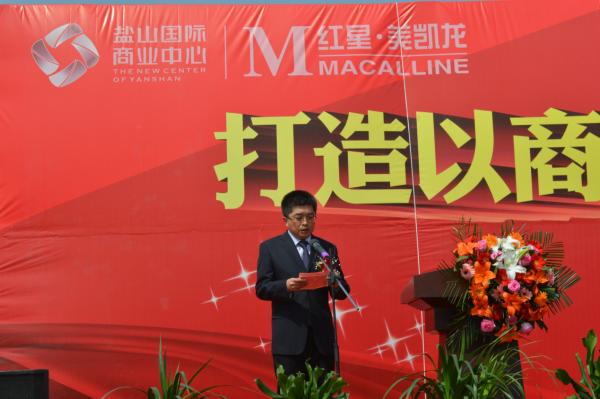 紅星美凱龍家居集團副總裁王琦琦先生發表致辭。在致辭中他確信鹽山是紅星美凱龍向前邁出的重要一步,是集團的一項重大決策方針,通過對鹽山市場的反復考察、論證,我們堅信紅星美凱龍·鹽山國際商業中心在鹽山各級領導的指引下,在社會各界朋友的關心與支持下,必將成就鹽山新輝煌!