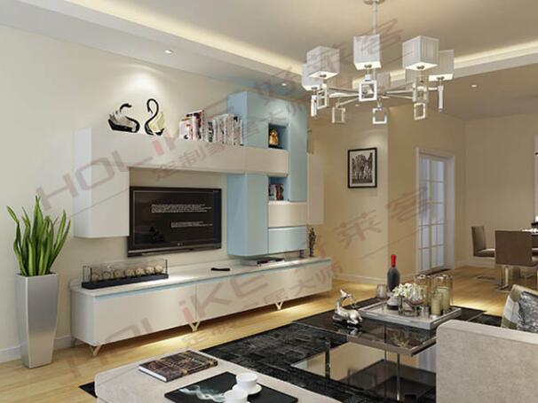 好萊客這款一字型懸空式電視柜,與地面保持一定距離,防潮防濕。墻面鋪以無拉手吊柜,環繞電視機,襯托電視機主體地位。沒有過多點綴,純凈的白,簡約風的客廳,每一處都透著令人沉迷的優雅。予空間一處明凈,予家一份溫馨。