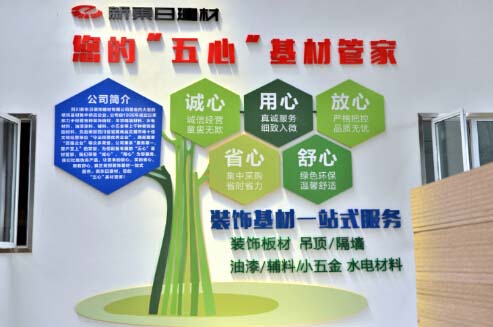 “五心”服務(wù),購物無憂。新東日以“誠心”“用心”來服務(wù)消費(fèi)者,杜絕假冒偽劣、以次充好的基材產(chǎn)品,讓消費(fèi)者“放心”購物,一站式購物讓消費(fèi)者買的“省心”,環(huán)保優(yōu)質(zhì)的產(chǎn)品讓消費(fèi)者用的“舒心”。新東日建材,一個善于創(chuàng)造的現(xiàn)代化建材企業(yè),用心樹立裝飾基材行業(yè)標(biāo)桿,為廣大用戶不斷推出系統(tǒng)、配套的環(huán)保新產(chǎn)品,不斷引領(lǐng)裝飾建材行業(yè)的新潮流,努力為家居健康和中國建筑裝飾行業(yè)貢獻(xiàn)自己的一份力量!