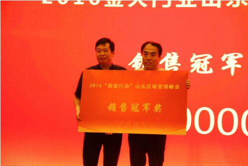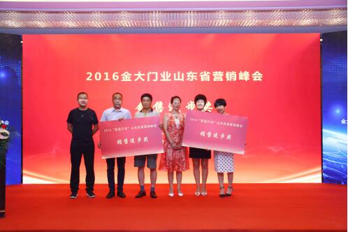 今年,金大門業(yè)山東區(qū)域也出了許多非常優(yōu)秀的經銷商,他們能夠把握機遇,財富,用智慧和汗水實現(xiàn)了自己的價值!在峰會現(xiàn)場舉行了盛大的頒獎典禮,分別頒發(fā)了“銷售冠軍獎”,給予文登金大20000元獎勵,以及“銷售進步獎”,給予牟平金大、濟寧金大、城陽金大、壽光金大各5000元獎勵。