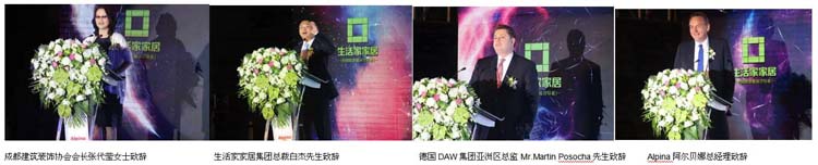 德國(guó)DAW集團(tuán)亞洲區(qū)總監(jiān)Mr.Martin Posocha先生及Alpina阿爾貝娜總經(jīng)理在會(huì)上對(duì)阿爾貝娜的歷史、企業(yè)概況及產(chǎn)品品牌做了簡(jiǎn)要介紹。尤其是阿爾貝娜的總經(jīng)理將Alpina阿爾貝娜的吉祥物——白貓也帶到了現(xiàn)場(chǎng),通過(guò)幽默的語(yǔ)言為在場(chǎng)的嘉賓分享了Alpina阿爾貝娜最新的廣告視頻,贏得在場(chǎng)嘉賓的高度稱贊。阿爾貝娜的總經(jīng)理強(qiáng)調(diào):“通過(guò)參觀生活家家居,我們看到了生活家對(duì)質(zhì)量和教育的重視,這是一次強(qiáng)強(qiáng)聯(lián)合的戰(zhàn)略合作。”