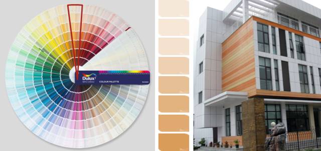 建筑外墻如果大面積選用淺色,建議選明度在60-65之間的數值更耐臟;純度低于300以下數值的顏色特別適合建筑外墻大面積使用,不會造成視覺上的不舒適,還能經久耐用不易褪色。