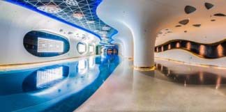 秀珀為倡導環保理念,突出個性化的設計,引領地坪行業新風尚,充分利用環氧磨石可以填充材質、可塑性極強的特點,發揮極致想象。加入各種色彩艷麗的骨料、貝殼、玻璃石子等材料,讓地面的色彩、圖案與建筑各方面融合呼應。地坪的流線型設計靈感與大廈數百米之外上海的“代言人”——黃浦江遙相呼應。行走其中,仿佛置身于絢麗的繪畫作品,令人沉醉。