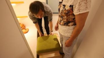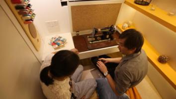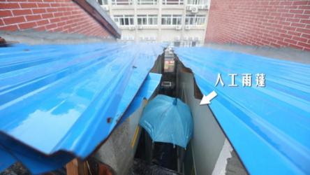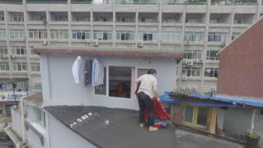 由于地塊限制,過去在造樓時往往會將地界利用到最大限度,貼著馬路邊界建樓,也叫做貼界。紙片樓的最窄處往往只有20公分。馮廟新一家三口就住在這樣一個紙片樓頂層的尖角頂端。儲物難、上樓難、洗衣難、曬衣難、燒飯難、睡覺難、通行難……每天的生活,對于他們來說,就像是在玩闖關(guān)游戲。