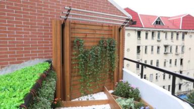 原本無任何防護(hù)措施的陽臺有著15度地面傾斜,曬衣服如同耍雜技。設(shè)計師通過巧妙設(shè)計擴(kuò)大了陽臺面積,同時采用了可升降衣架,增大不少晾曬面積。另外些許綠植裝扮也給陽臺增添了活力。
