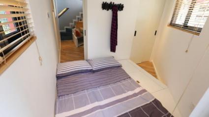設(shè)計師改變傳統(tǒng)設(shè)計,在不改變室內(nèi)空間情況下,解決儲物難問題,巧妙通過收納柜來擴(kuò)大視覺空間,收納柜上方還能變成雙人父母床,下方每個柜子都能儲藏更多零碎雜物。改造后一家三口共睡同一空間內(nèi)的情況,也得到完善解決。