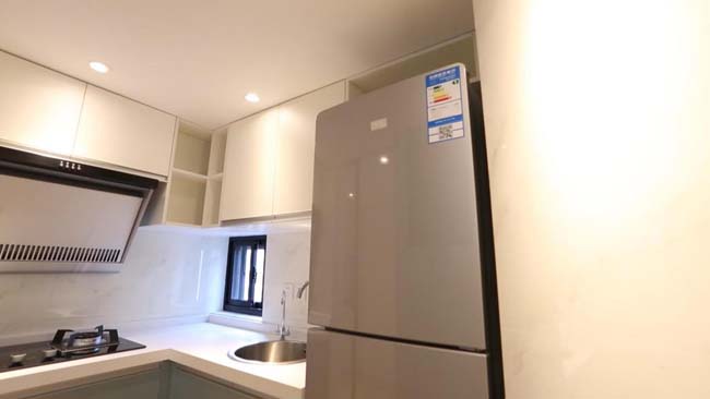 廚房空間,完美解決了改造前因為建在露天的公共過道旁,需要在雨天撐傘端菜的問題。改造后的廚房雖小,但是功能齊全,各式吊柜和地柜提供充足的收納。原本操作臺狹小問題也得以解決。