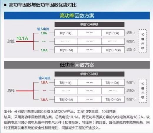 使用歐普商照LED T8燈管-“亮易Ⅲ”高功率因數照明方案,電網供電總線電流降低一半,進而減少供電系統中的電氣元件(如變壓器、電器設備、導線等)的容量。從而達到降低熱損耗,增強系統安全性,穩定供電電壓,間接減少投資費用。