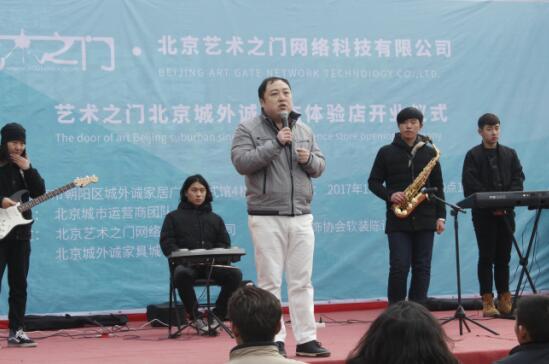 2017年1月15日上午10時18分,中國裝飾行業(yè)裝配式互聯(lián)網(wǎng)第一平臺——藝術(shù)之門于北京朝陽區(qū)城外誠家居廣場中式家具四樓儉舍成立北京第一家液態(tài)體驗店。在開幕式現(xiàn)場,30家裝飾公司、經(jīng)銷商受邀參加,中國建筑裝飾協(xié)會軟裝陳設(shè)分會副秘書長洪曉鵬、城外誠商場副總裁豆經(jīng)理作為嘉賓出席,189家媒體進(jìn)行報導(dǎo)。
