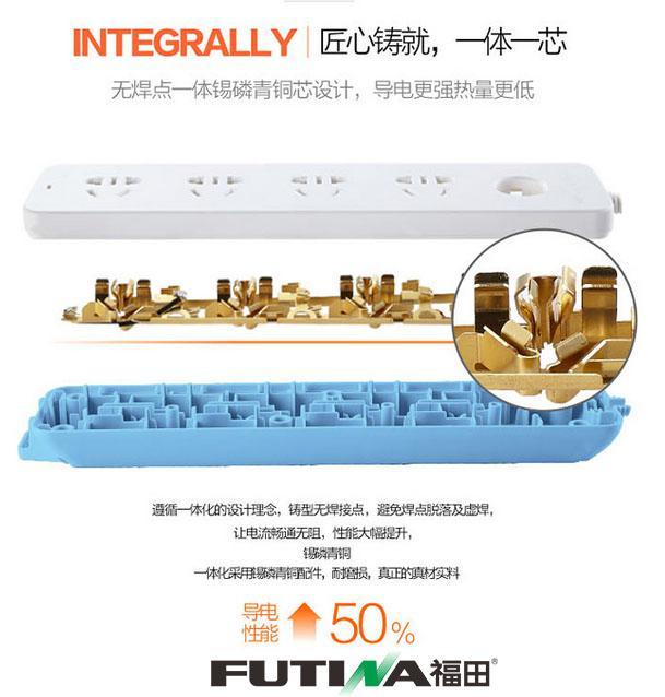 福田排插是一款廣受好評的安全排插,福田排插全系列排插產品配備安全保護門,在結構性能方面也采用一體化銅條和一體化阻燃面板,福田排插在安全性能上要求更為嚴格,與市面上的眾多排插品牌相比,實在是排插屆的一股清流。福田排插在材料和工藝上都嚴格執行新國標的要求,即便新國標是2017年才執行,但福田排插已經全系列產品提早執行新國標要求。