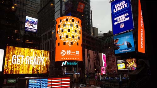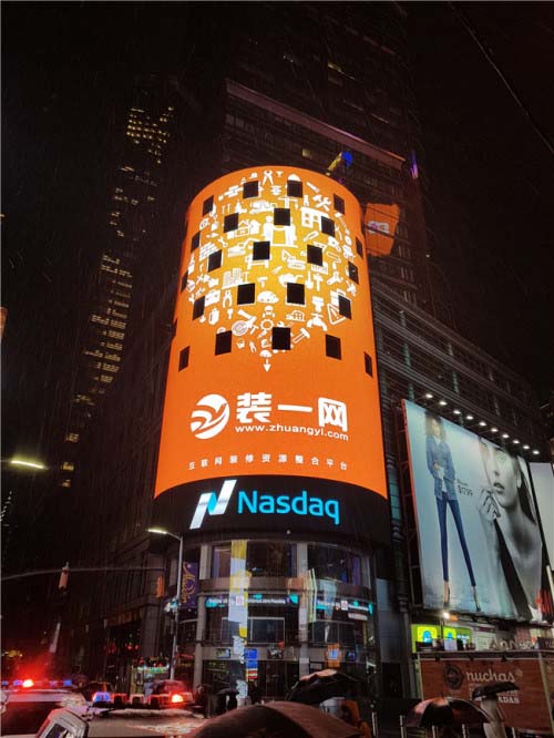 裝一網形象廣告登陸紐約時代廣場納斯達克大屏(白天所拍)