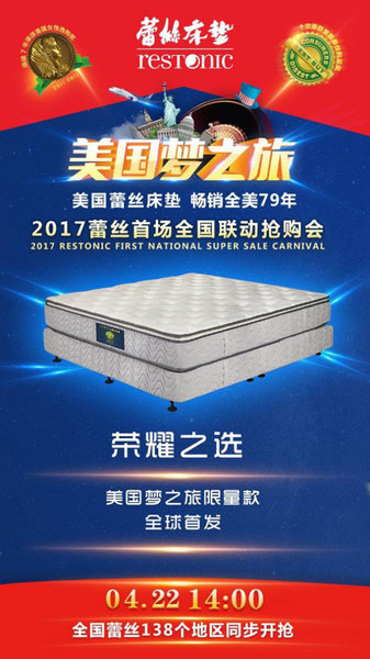 美國夢之旅限量款產品“榮耀之選”全國首發!價格你說了算,只要報名參加免費去美國活動每滿1000人,“榮耀之選”床墊的價格立減100元,以此類推!全國限量1000張,先到先得,過時不候,4月21日凌晨0點截止報名!
