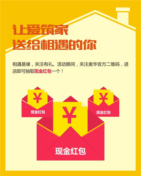 機(jī)遇是緣,關(guān)注有禮。本次活動(dòng)期間只要您關(guān)注奧華官方二維碼,即可進(jìn)店抽取紅包一個(gè)。
