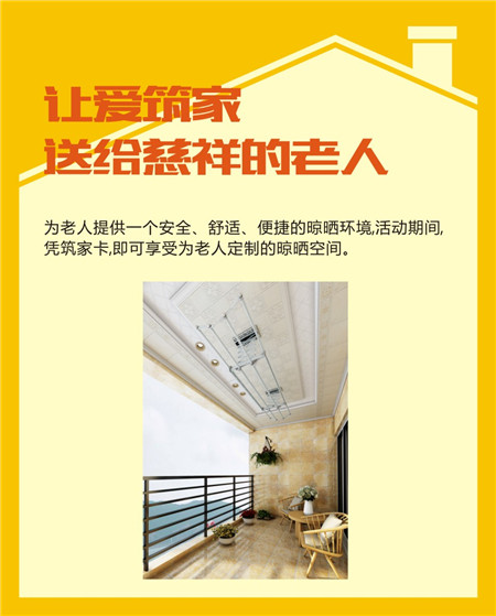 為老人提供一個(gè)安全、舒適、便捷的晾曬環(huán)境。活動(dòng)期間,憑筑家卡,即可享受為老人定制的晾曬空間。