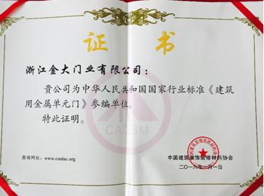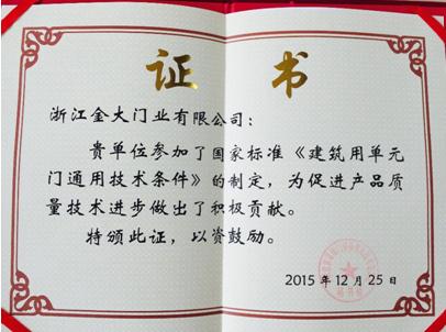 金大門業(yè)參加國家標準《建筑用單元門通用技術(shù)條件》制定單位