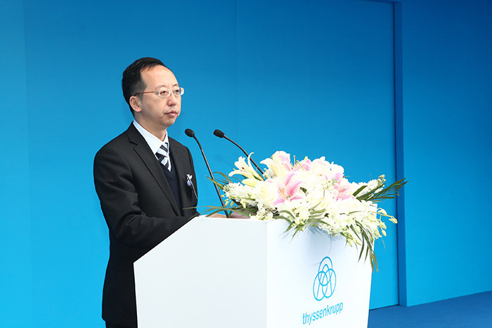 上海市松江區區長秦健先生致辭 蒂森克虜伯電梯的優質產品和創新技術也獲得了政府和行業協會的大力肯定。上海市松江區區長秦健先生在本次揭幕活動中說道:“在這20年間,蒂森克虜伯電梯始終把安全放在首位,為中國客戶提供最好的產品、服務和解決方案;企業也逐步發展壯大,成為松江高新技術企業中的翹楚,進而成為上海制造企業50強。我們有理由相信,蒂森克虜伯電梯能為中國市場帶來更多創新、可靠、節能的產品和解決方案。“