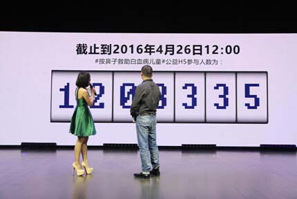倡導會上,主辦方揭曉了此次#按鼻子拯救白血病兒童#行動H5的參與人數,經官方后臺顯示達到了120多萬人次,引發了全場熱烈掌聲。可見此次活動在傳播過程中的確引起了社會各界人士的關注與認可。現場多項發布環節都創造了行業先例,創新與科技并存的形式為行業的活動發布會提供了很有意義的借鑒。