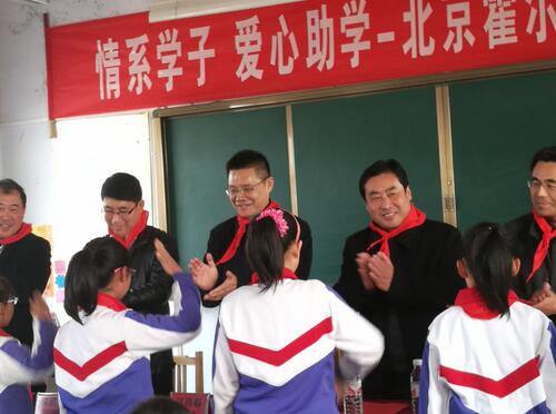 孩子們?yōu)榛魻柎哪鹃T(mén)和縣委、學(xué)校領(lǐng)導(dǎo)系上紅領(lǐng)巾,感恩他們對(duì)學(xué)校的幫助與支持