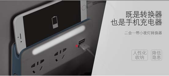 你以為福田多功能轉換器就是這么簡單的一款轉換器嗎?那你就錯了,它還配置了小夜燈,很多家庭在晚上睡覺時都會開一盞小燈,半夜起床時也不至于讓自己處于黑暗中看不清,有孩子的家庭也能方便的觀察到寶貝的情況。最貼心的是小夜燈的開關與插座的開關是獨立控制的,任何時候使用都合適。