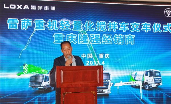 ▼ 耘瑪攪拌站總經理董凱先生談起購車始末:公司經過多番的市場調查和產品比對,發現雷薩重機不僅車身全行業最輕,還采用了先進的發動機,這次首先簽訂了20臺,以后公司會逐步把所有產品都升級換代為符合國五標準的雷薩重機。