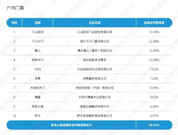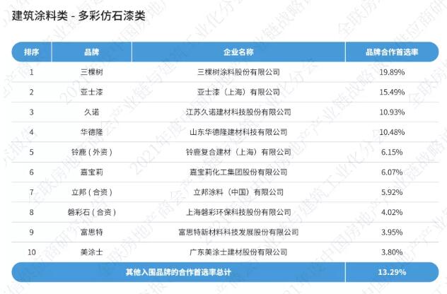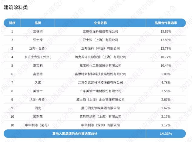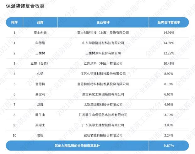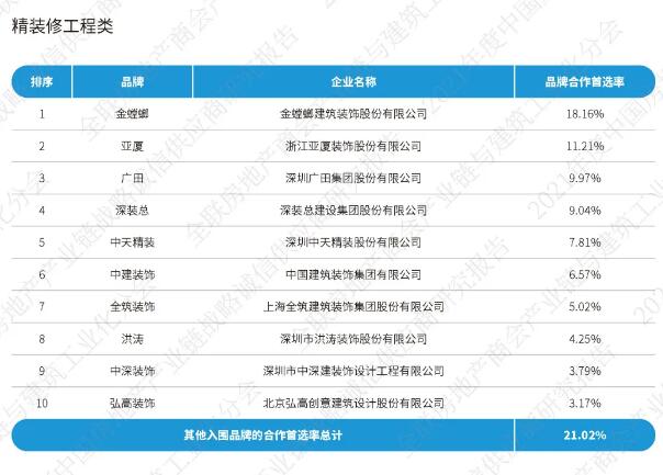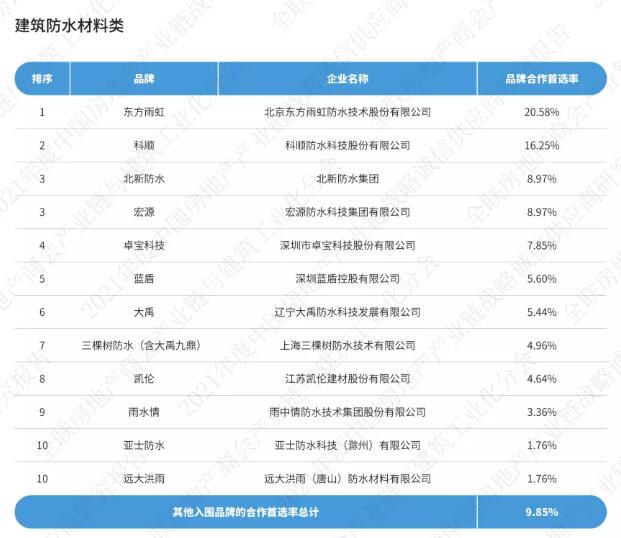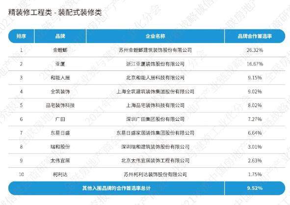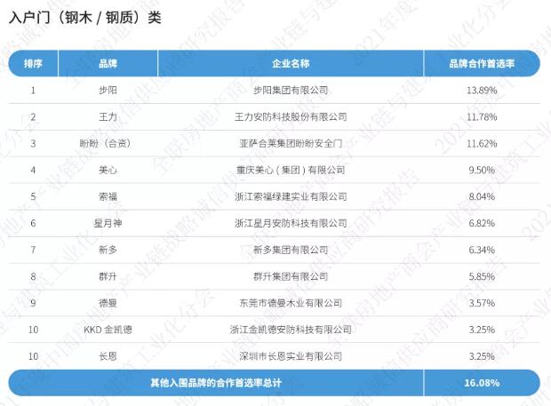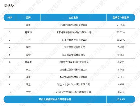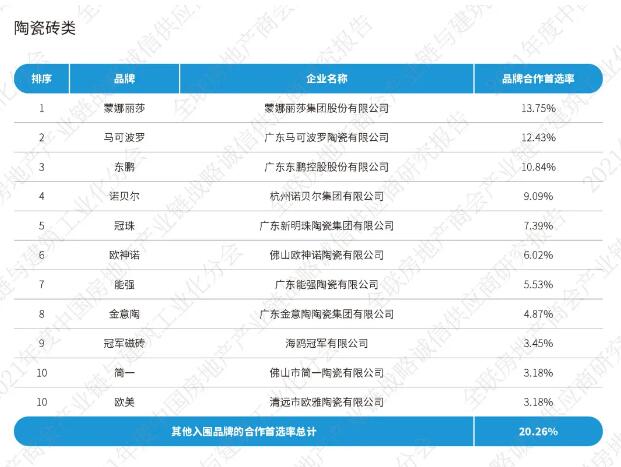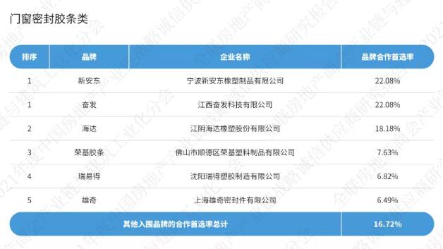 《2021中國房地產(chǎn)產(chǎn)業(yè)鏈戰(zhàn)略誠信供應(yīng)商研究報(bào)告》通過征集、分享、篩選在中國內(nèi)地從事房地產(chǎn)產(chǎn)業(yè)鏈相關(guān)經(jīng)營活動的供應(yīng)鏈企業(yè),按照品牌力、產(chǎn)品力和合作力三大維度,從品牌知名度、綜合實(shí)力、核心競爭力、研發(fā)實(shí)力、產(chǎn)品品質(zhì)、戰(zhàn)略合作量、服務(wù)能力七大角度出發(fā),以會員推薦、實(shí)地調(diào)研、問卷訪問、專家評審等途徑方式對供應(yīng)鏈企業(yè)與我國TOP200房地產(chǎn)企業(yè)以及商會房地產(chǎn)會員企業(yè)的戰(zhàn)略合作情況,進(jìn)行品牌首選率統(tǒng)計(jì)計(jì)算。