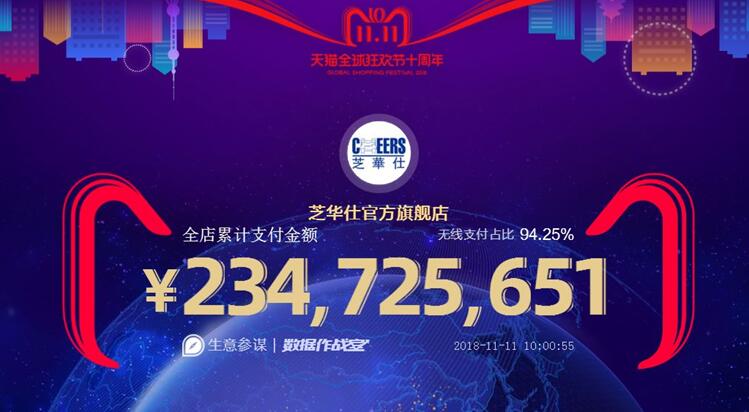 截止2018年11月11日上午10點,天貓芝華仕總銷售額已經突破2.34億,雙十一大戰還未結束,讓我們共同期待今年芝華仕能夠延續如此傲人的戰績。