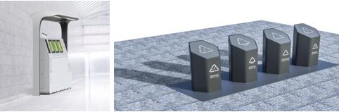 <圖:智能垃圾分類設備|驤騰>      圖:下沉式景觀分類垃圾桶|驤騰>